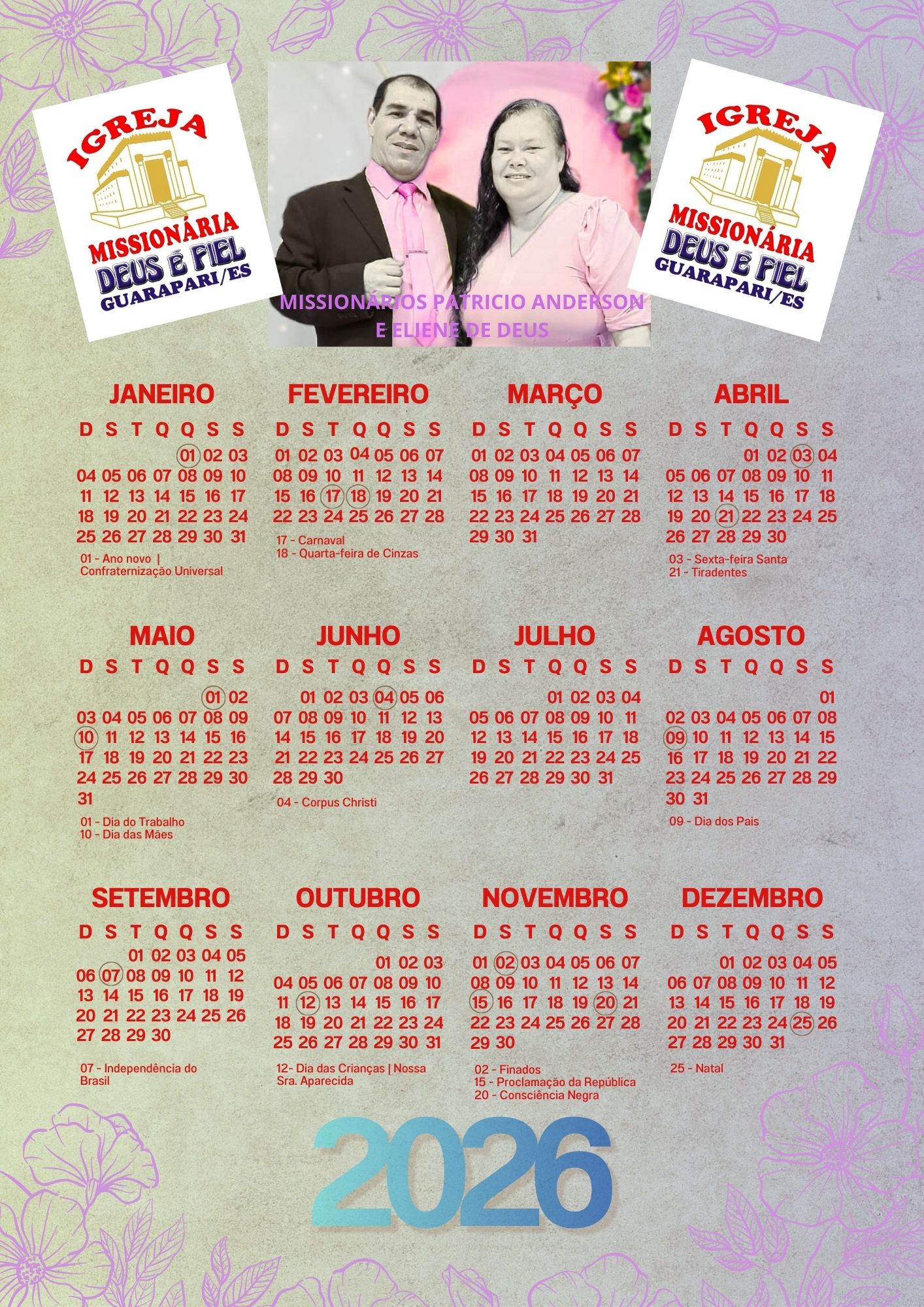 Diácono Dirigente Culto de Missão Diretor Administrativo Conselheiro Fiscal